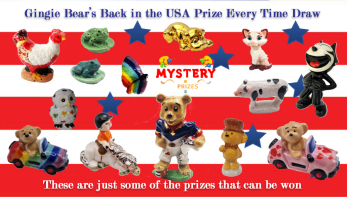 New for Gingie Bear's Back in the USA Tour is our Prize EveryTime Draw. Each entry will be guaranteed a prize every time. For just £15 per entry you will win a prize each time an entry is drawn. Entries are limited so order early. Enter now! You are guaranteed to win a prize for each entry you purchase.