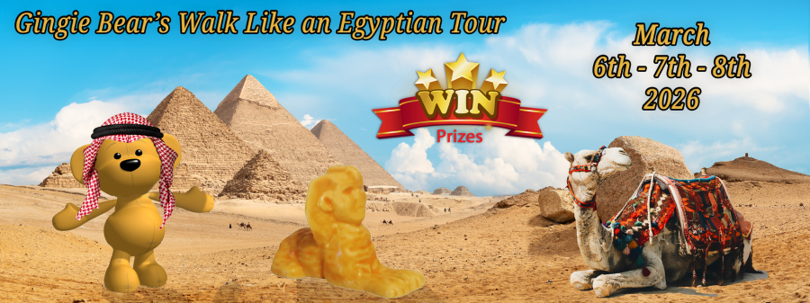 Join us for Gingie Bear's latest adventure. His "Walk like an Egyptian" Tour. 6th - 7th - 8th March 2026 on his facebook.com/gingiebear page.