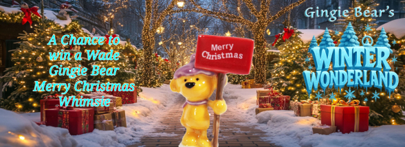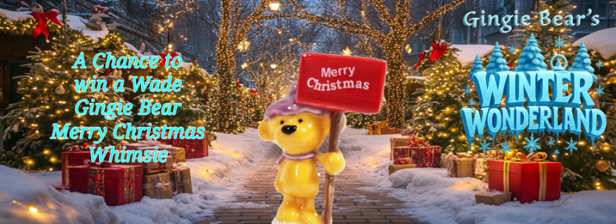 C&S Collectables Direct and Gingie Bear have teamed up with the USA Wade's Group to bring their members a free Gingie Bear's Winter Wonderland draw entry. The prize for one lucky winner is a Wade Gingie Bear Merry Christmas Whimsie. (See Picture left) To enter the free draw use the form at the bottom of this page. There will also be a mystery Wade prize for one lucky winner. Don't miss it, enter now!