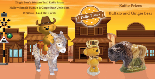 Gingie Bear's 'Western Trail' - Here at C&S Collectables Direct we have teamed up with the Wade Whimsie Share and Chat Collectors Group" to bring their members a free Gingie Bear's 'Western Trail' Draw entry. The prize for one lucky winner is an Uncle Sam Gingie Bear Whimsie with a special lustre hat and red bow tie. (See Picture right) To enter the free draw use the form at the bottom of the page.