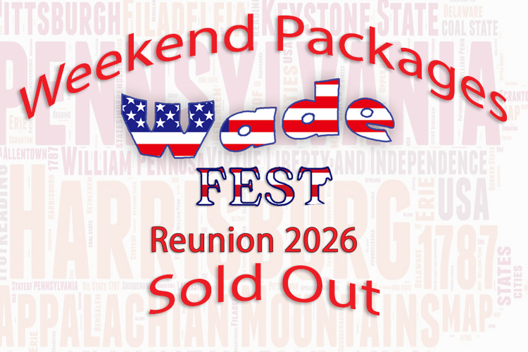 Everyone who plans to attend the weekend either with a package or just to drop by on Saturday, we look forward to welcoming you to the Wade Fest Reunion 2026.